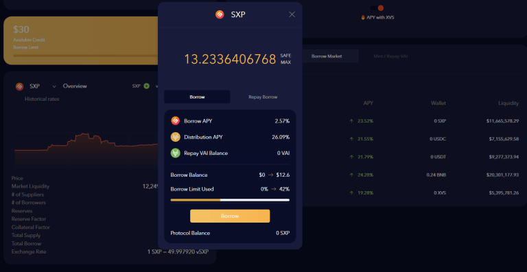 - Sở hữu các đồng coin dùng để Supply (cung cấp thanh khoản cho Venus) như là BTC, ETH, BNB, SXP, USDT, BUSD, XVS,…